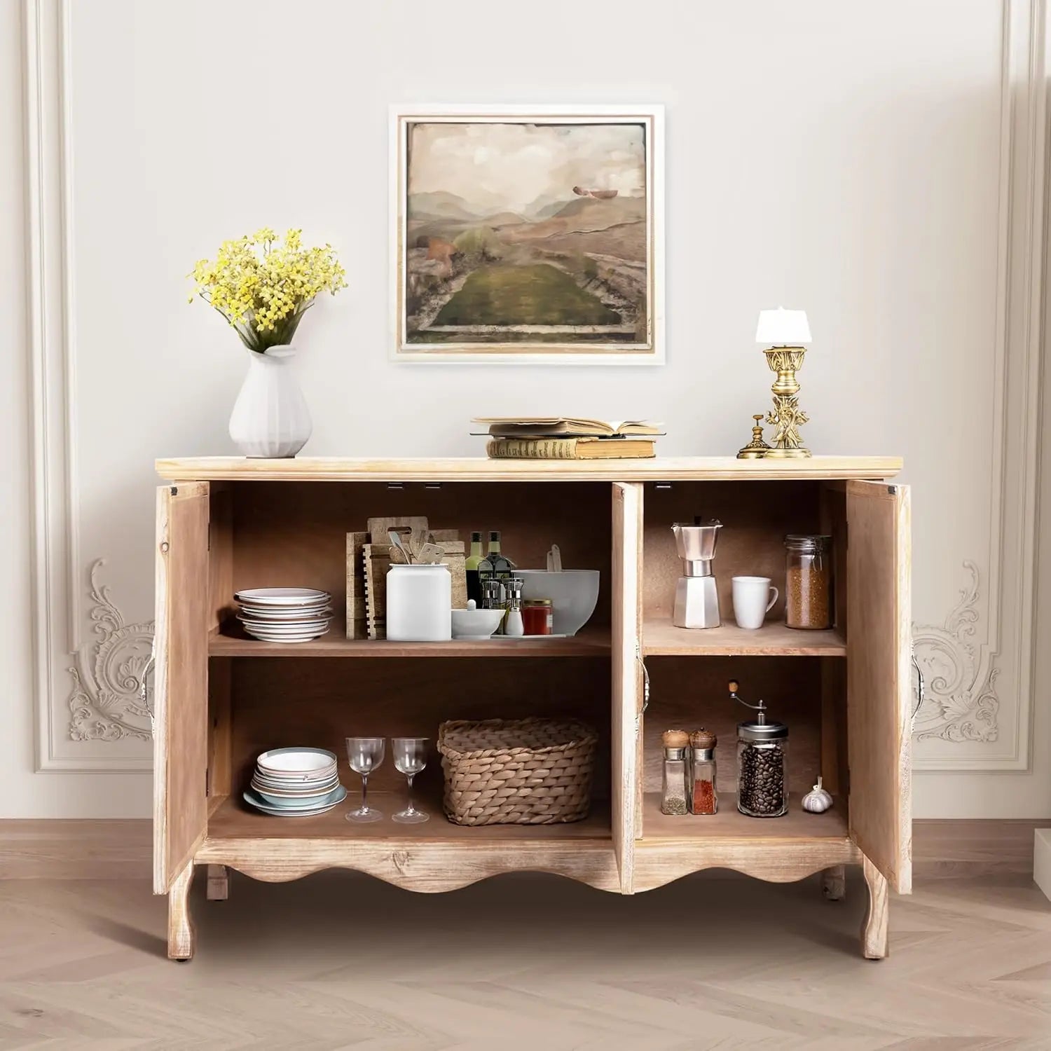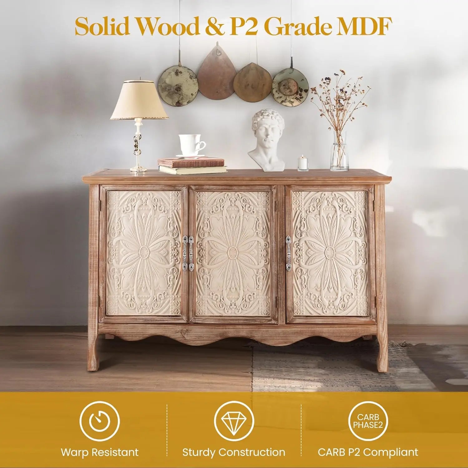 XMSJ Accent Storage Cabinet With Carved Doors And Shelves Farmhouse Sideboard Buffet