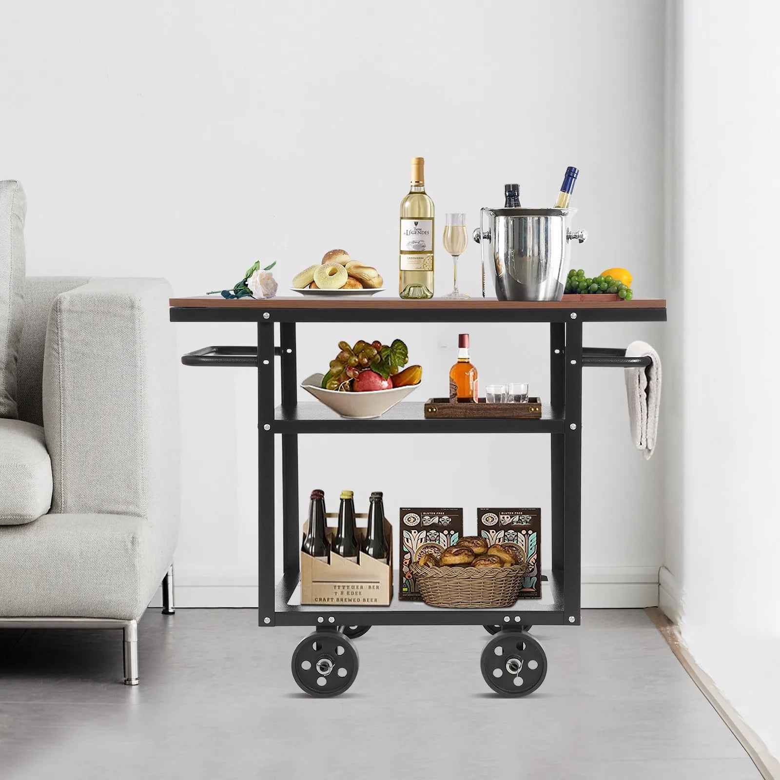 - Three-tier design gives you ample vertical storage for your barware, utensils, and decor in one mobile station.