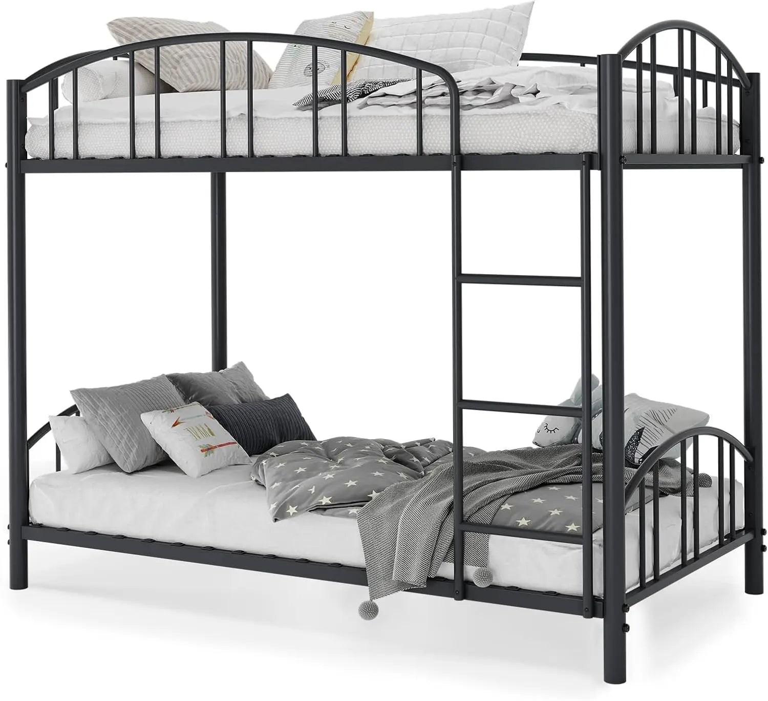 Upgrade your sleep space with the HiMISSH metal bunk bed — a twin-over-twin setup with a safety ladder for effortless sharing.