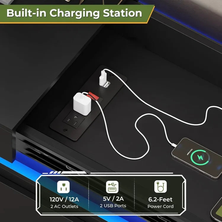 Transform your space with a sleek, modern 6-drawer dresser that blends generous storage, a sliding desktop charging station, and ambient LED lighting into one stylish centerpiece.