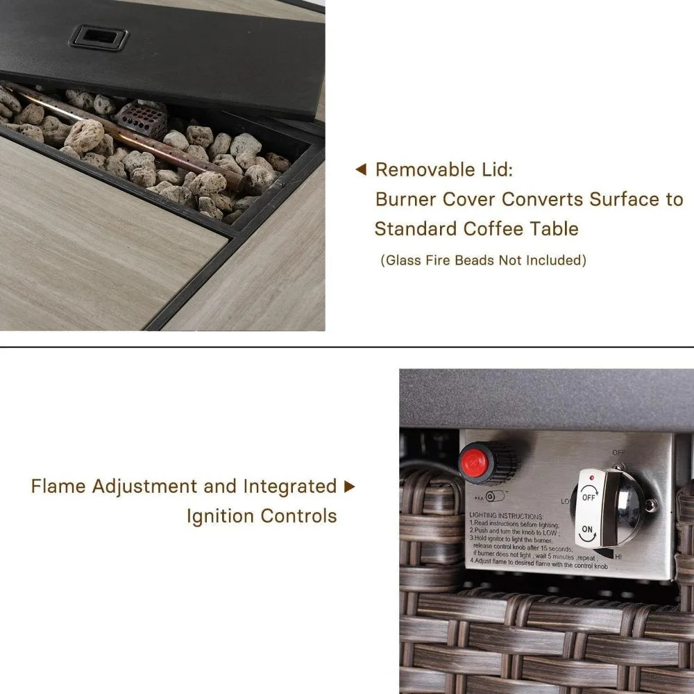 - Outdoor propane fire pit table combines heat with a practical tabletop space for snacks, beverages, and conversation, so you can entertain without missing a beat.