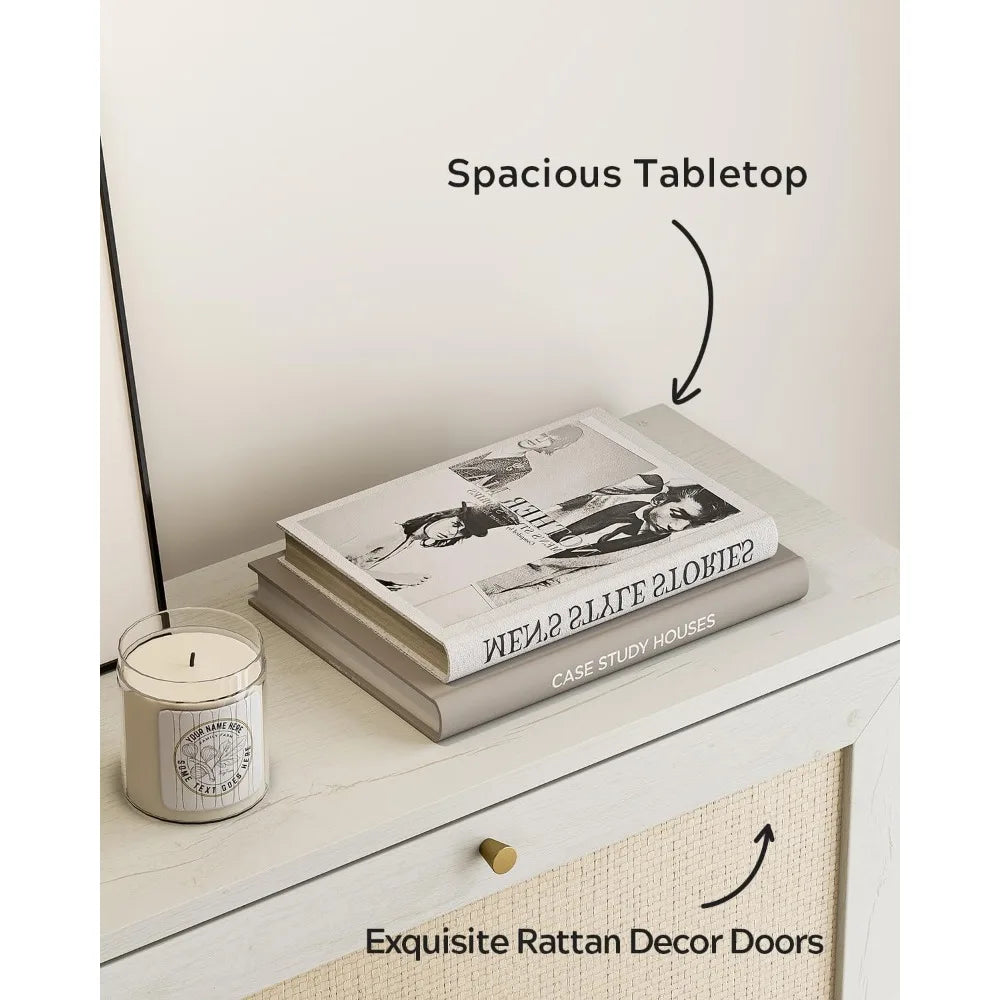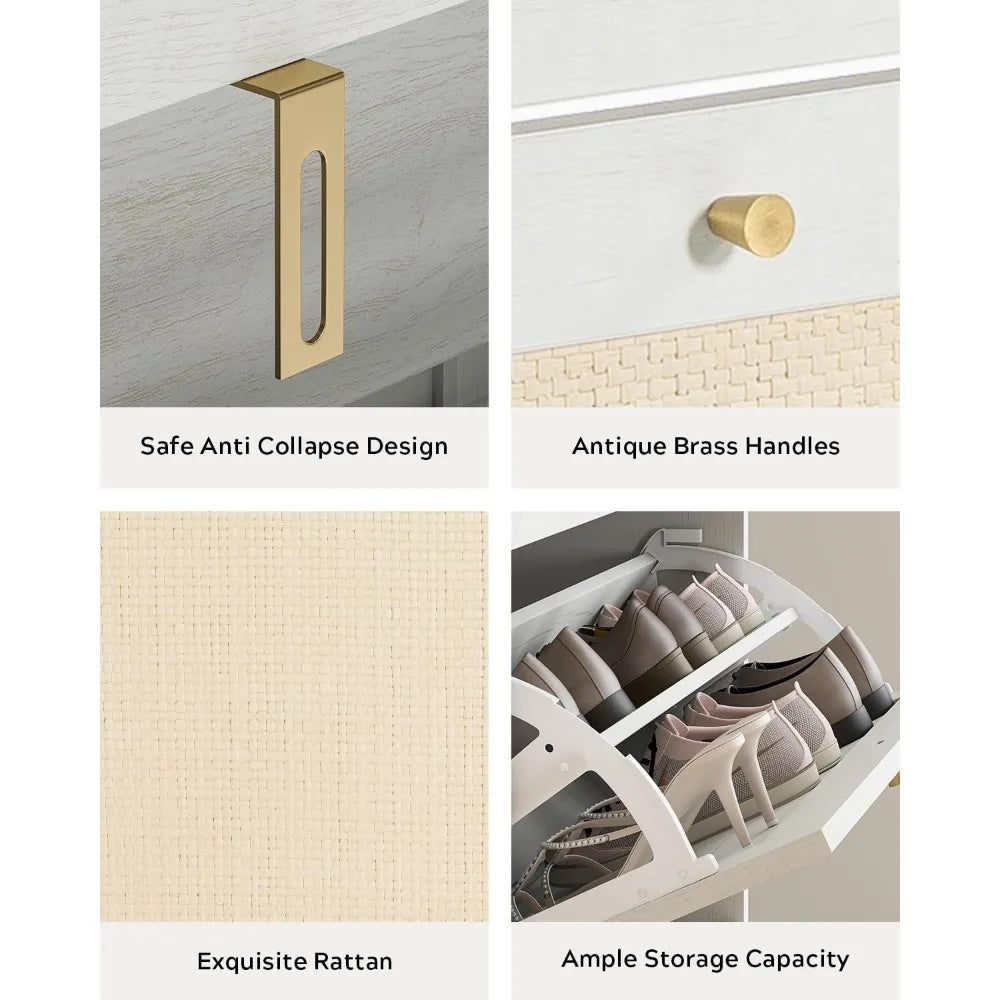 ANGDUO Rattan Shoe Cabinet Set With Flip Drawers Freestanding